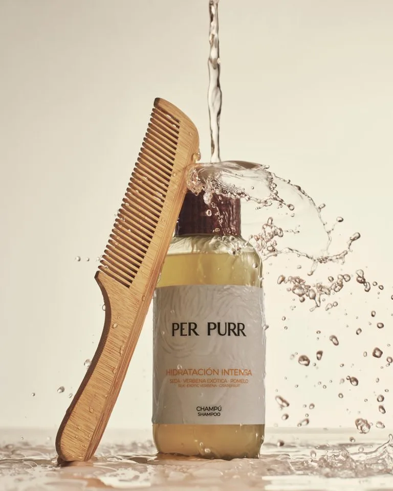 Depositar una cantidad adecuada de champú en la palma de tu mano (esta dependerá de la longitud y densidad de tu cabello), frota el champú entre tus manos y luego aplícalo directamente sobre el cuero cabelludo. Después de masajear el cuero cabelludo, lleva el champú hacia las puntas del cabello, esto ayudará a limpiar y eliminar la acumulación de suciedad y restos de productos. Una vez que hayas aplicado el champú por todo el cabello, enjuágalo completamente asegurándote de que no queden residuos de champú. Es recomendable aplicar nuestro Acondicionador de Hidratación Intensa para ayudar a hidratar y desenredar el cabello, obteniendo el efecto óptimo.